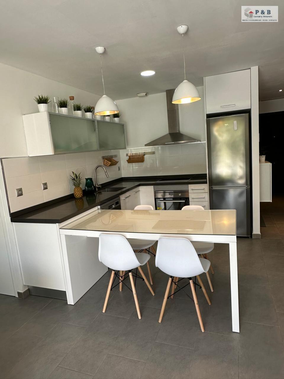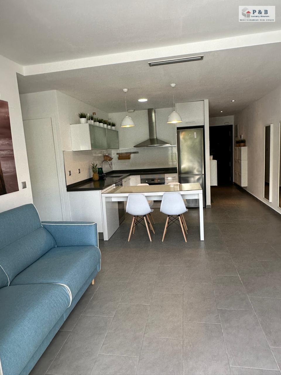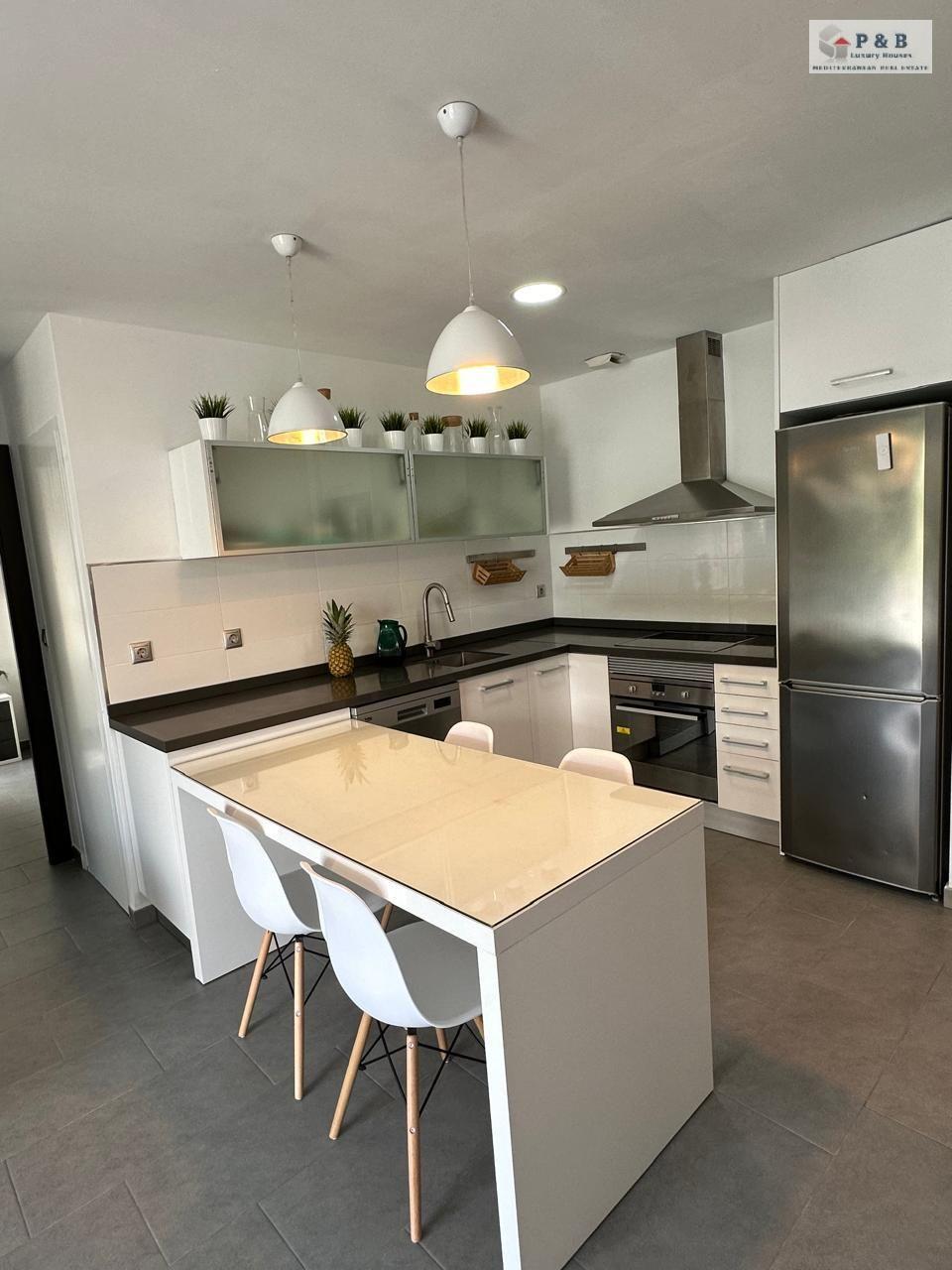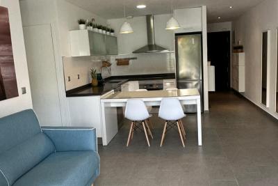 Vivienda tiene 80m2 construidos, este luminoso hogar ofrece un amplio salón con cocina integrada, dos dormitorios luminosos y dos baños, terraza de 60m2, piscina comunitaria.