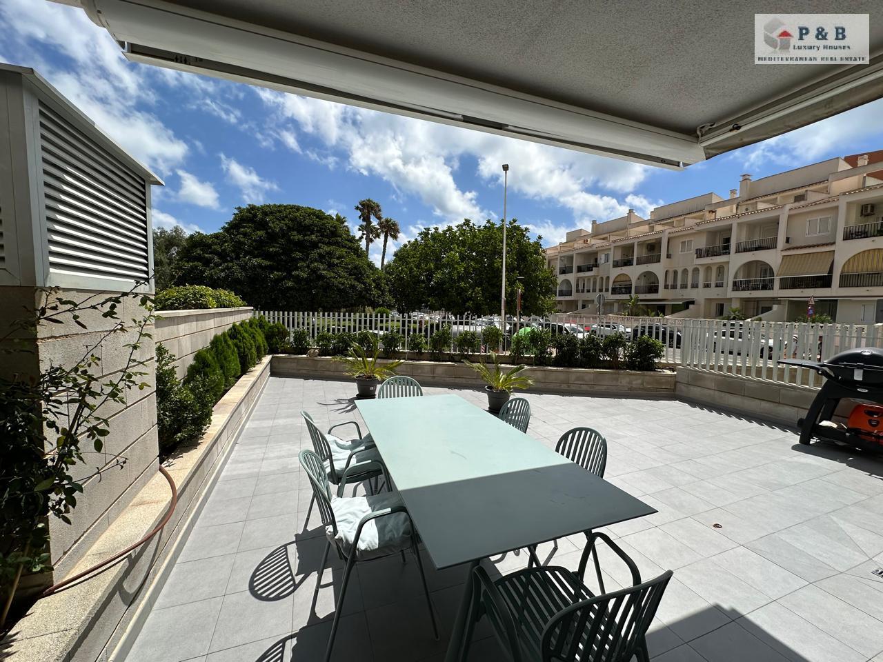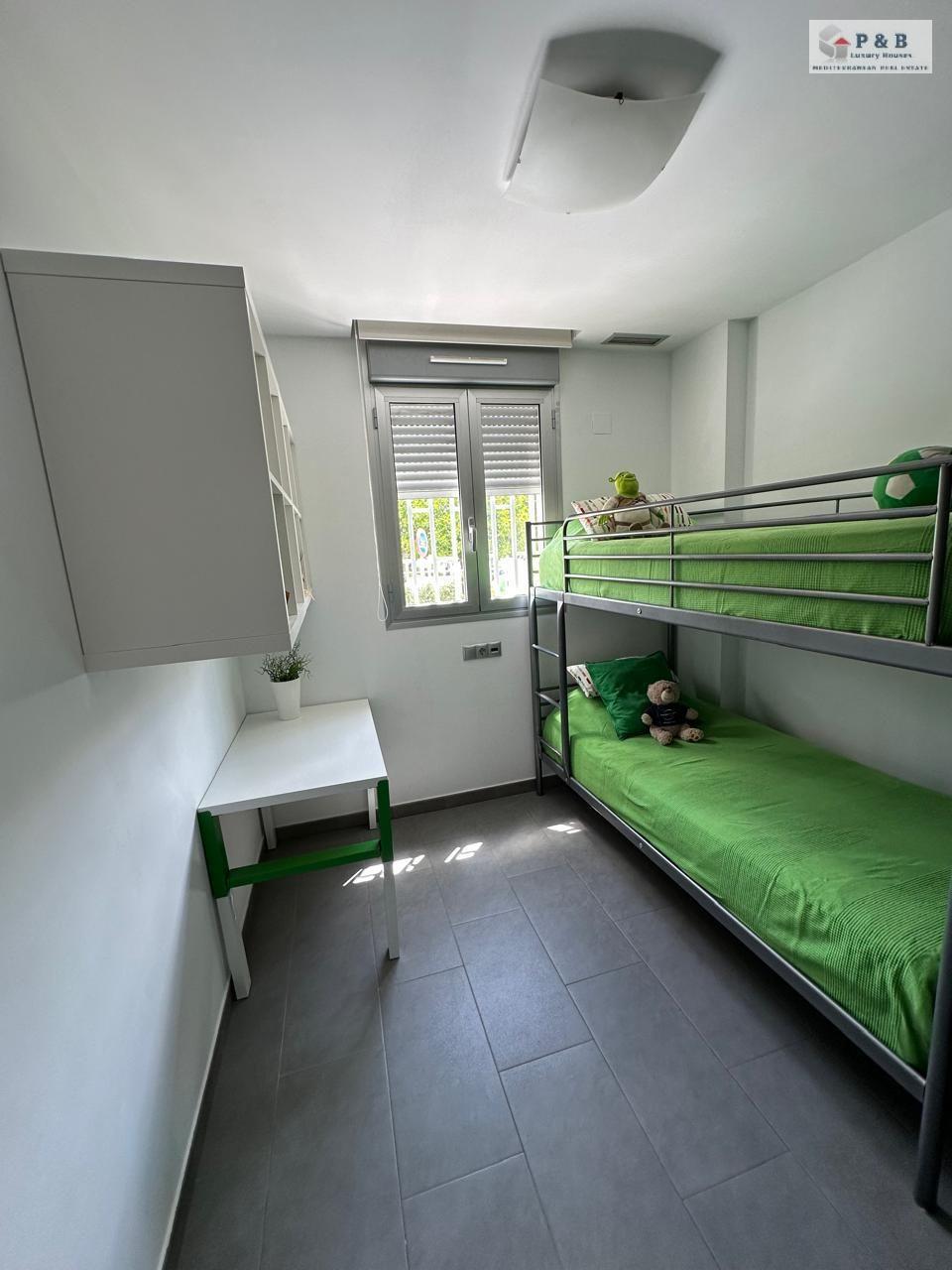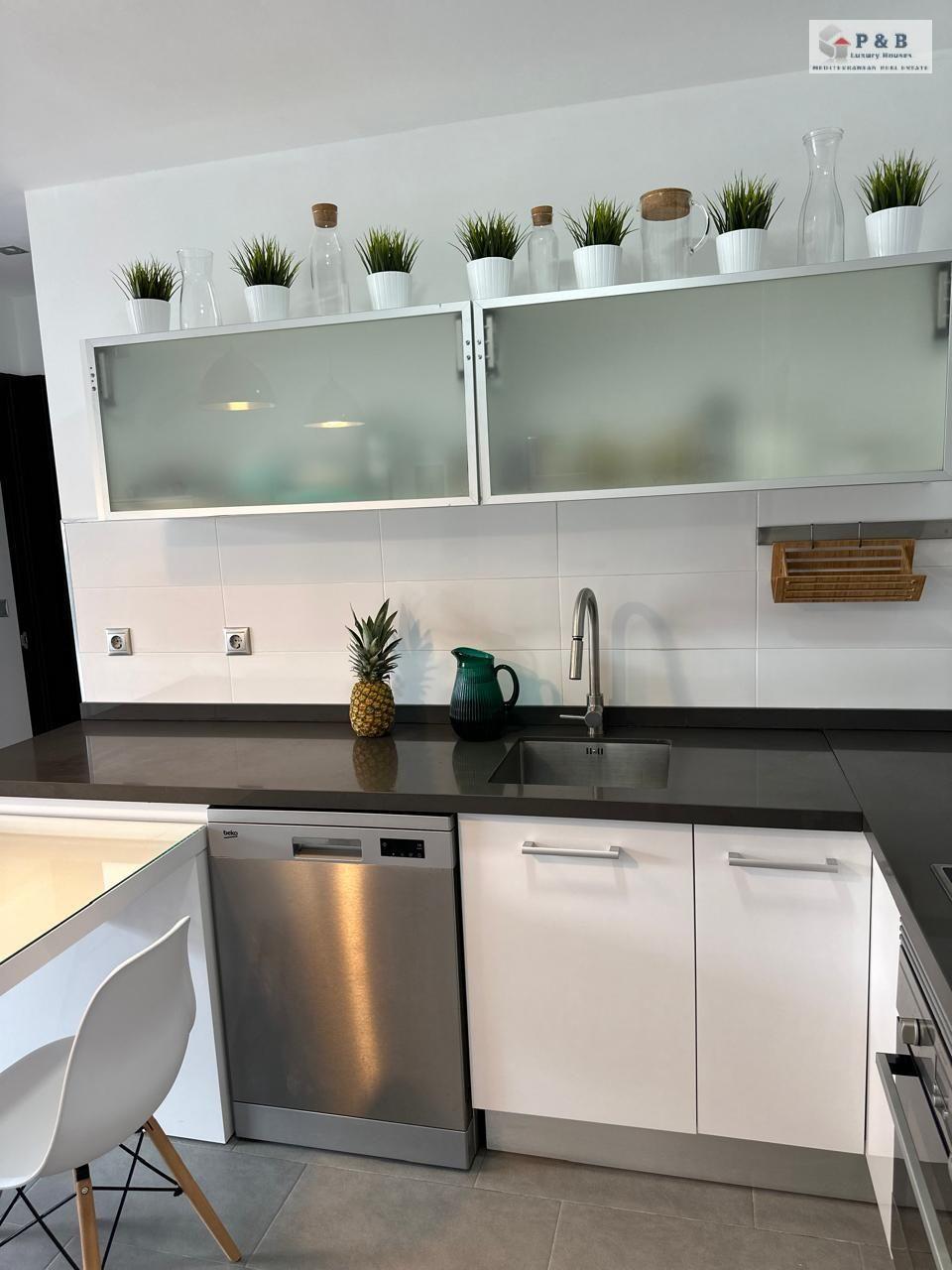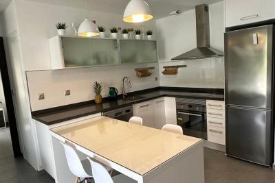 Vivienda tiene 80m2 construidos, este luminoso hogar ofrece un amplio salón con cocina integrada, dos dormitorios luminosos y dos baños, terraza de 60m2, piscina comunitaria.