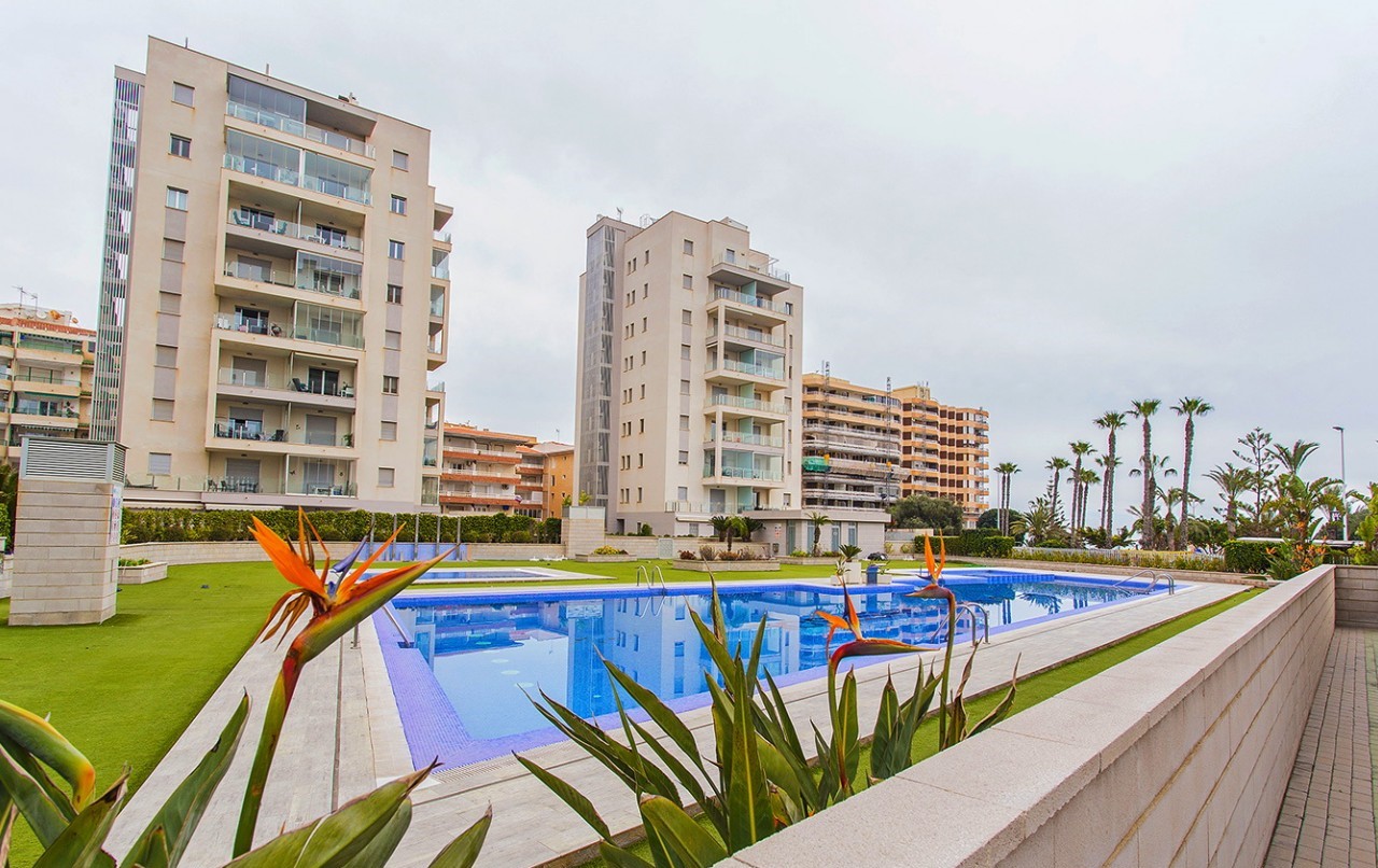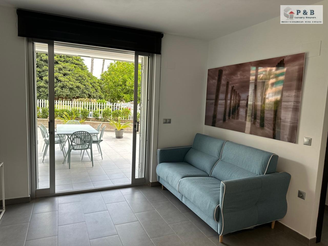 Este moderno apartamento en planta baja se encuentra a solo 150 metros de la playa de La Mata y frente a un hermoso parque.