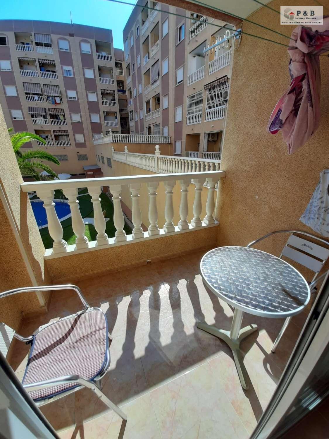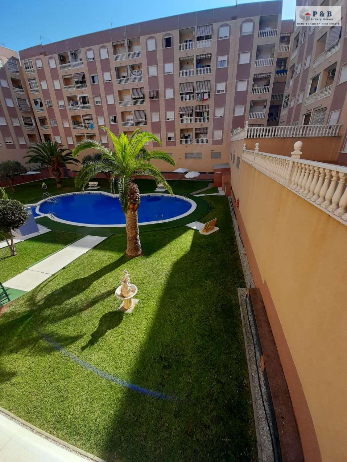 Se vende apatamento con 2 dormitorios, cocina independiete, baño completo, terraza con vistas al jardin y piscina comunitaria, esta totalmente amueblado y equipado, 60m2 superficie construida, ubicado en zona centrica con todo tipo de servicios, cerca de colegio y supermercados