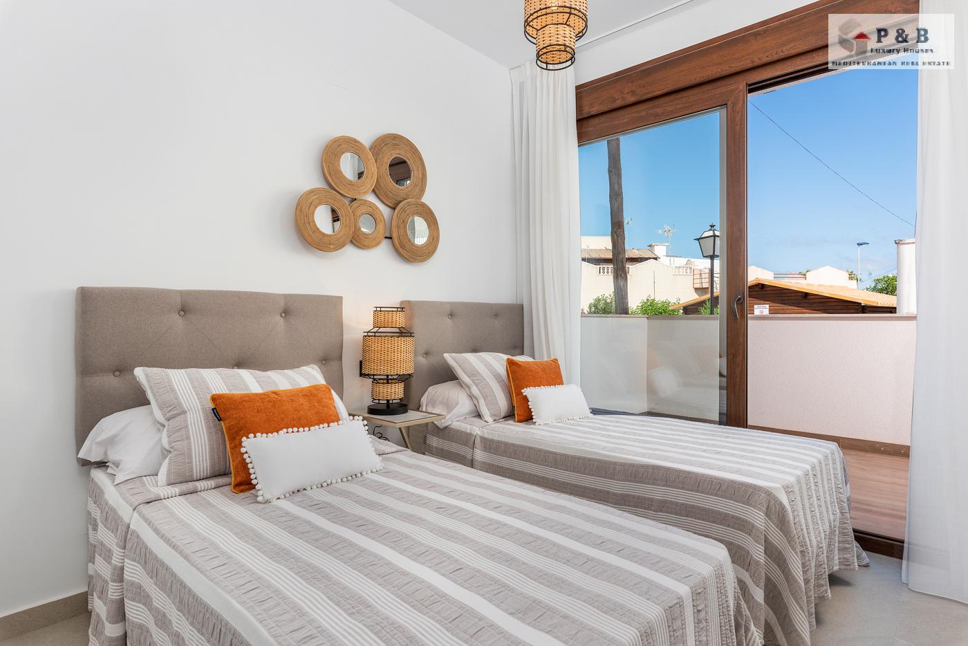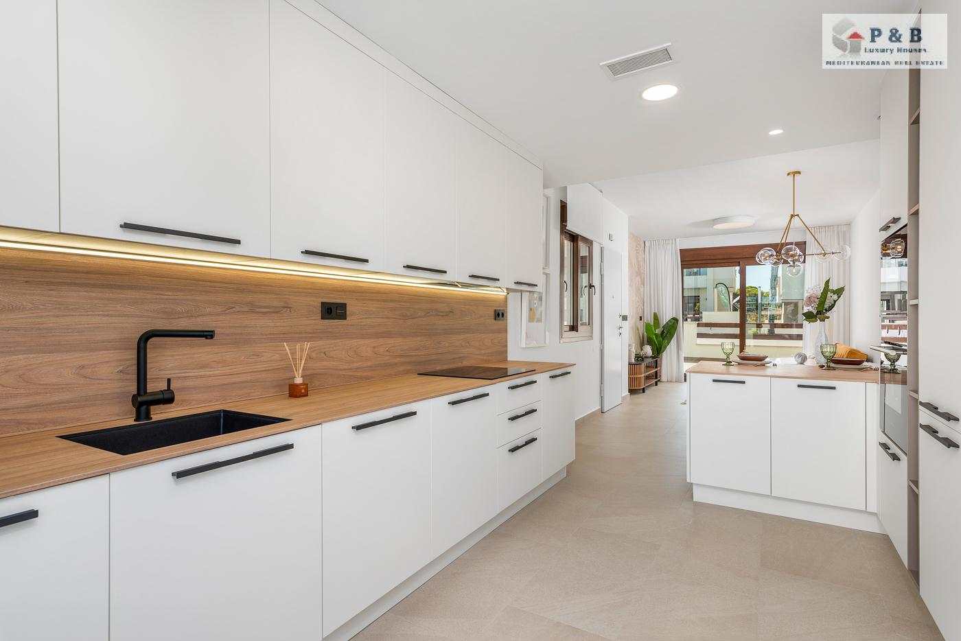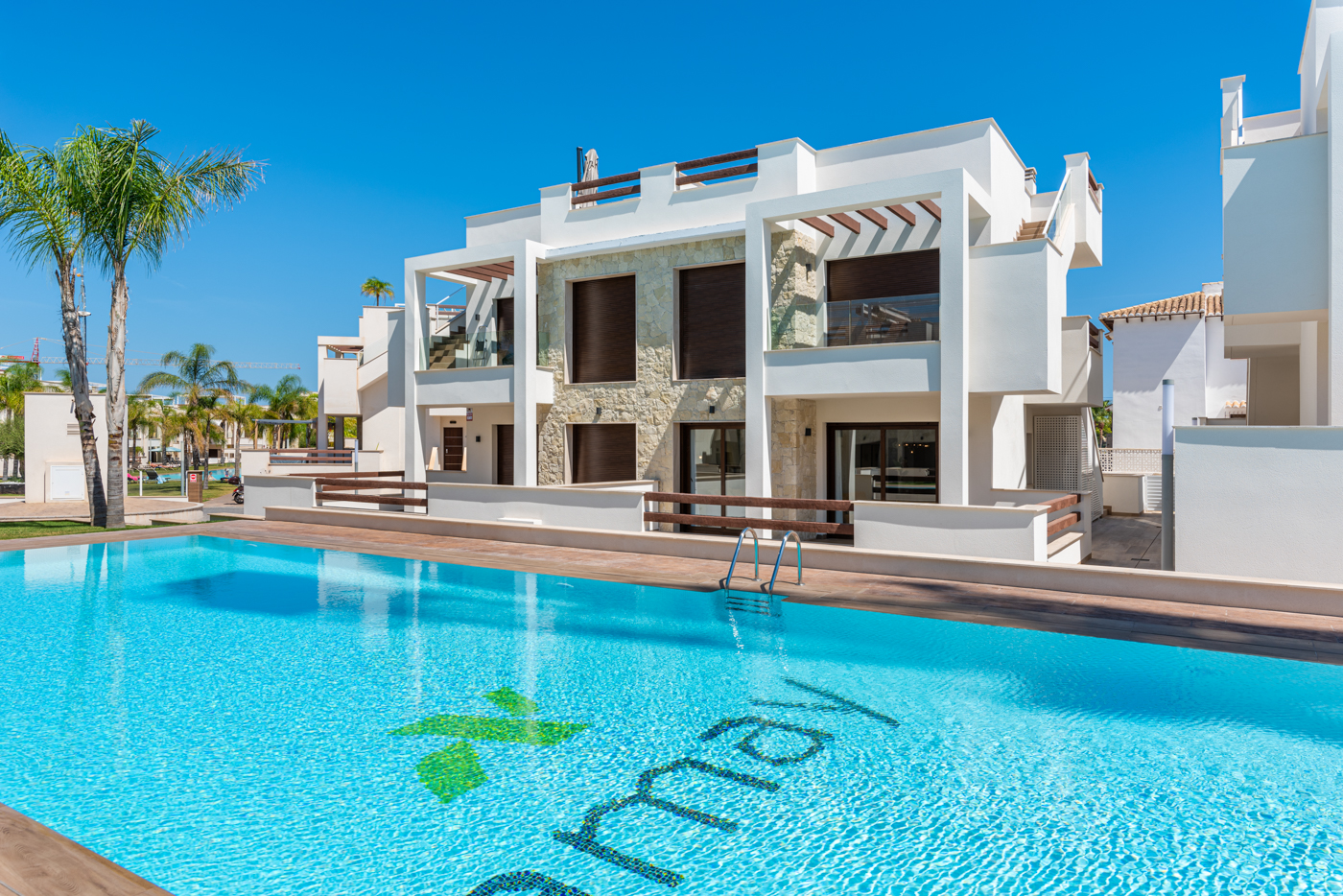 Los apartamentos de la planta superior ofrecen vistas panorámicas al la laguna salada y los apartamentos de la planta baja tienen grandes terrazas con vistas a la zona verde.