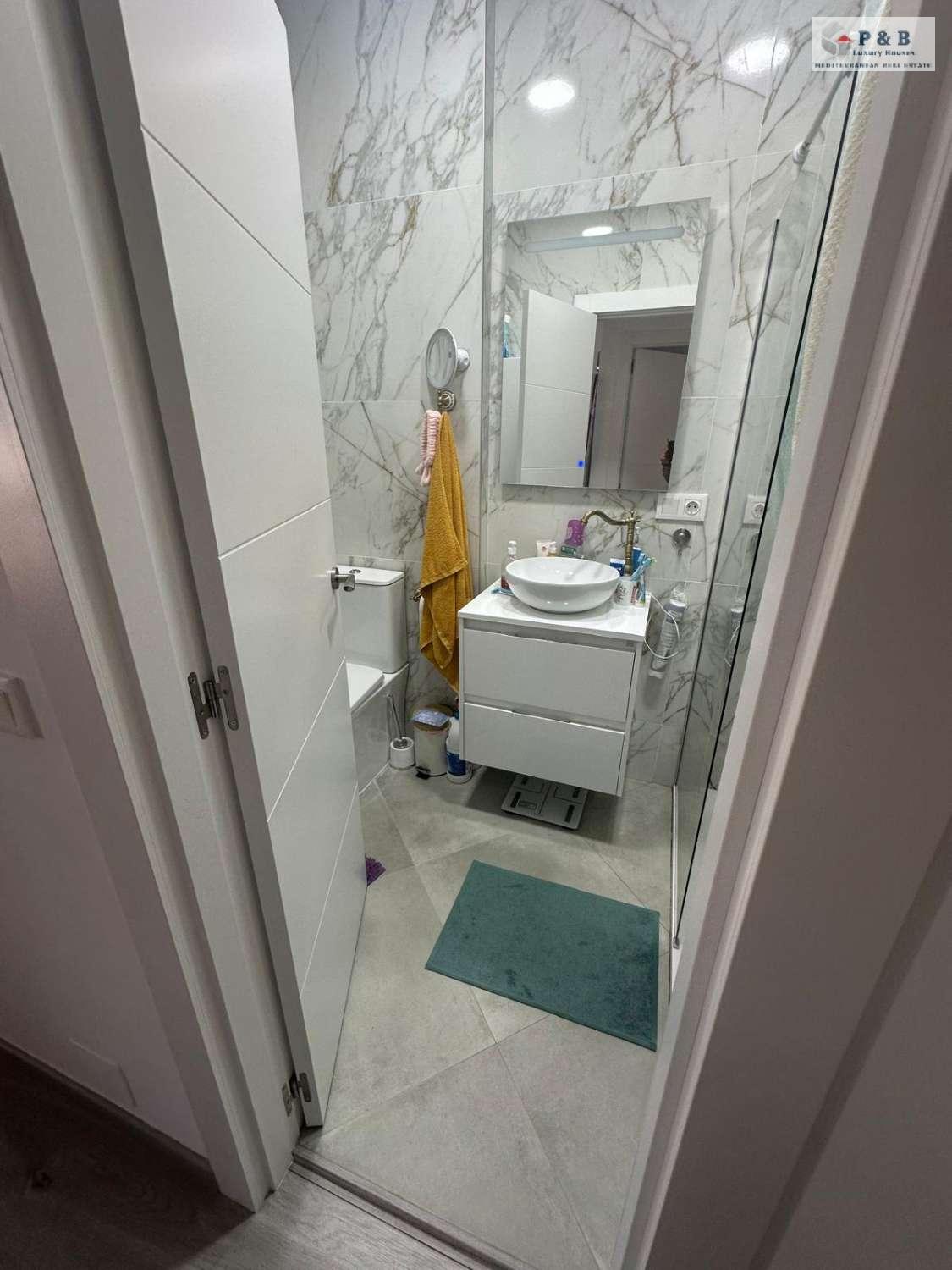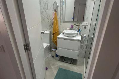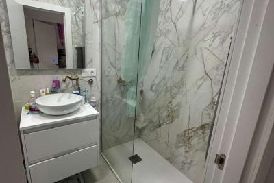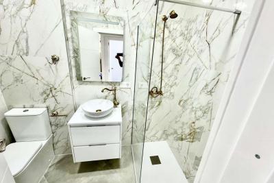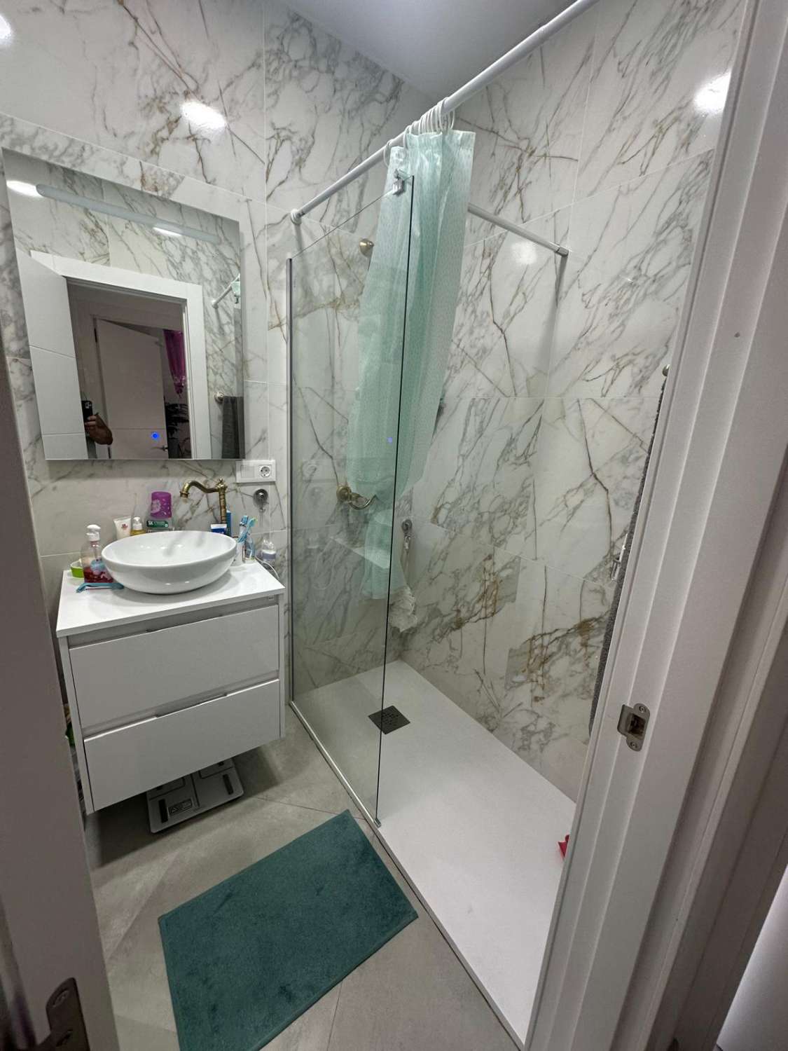 El baño ha sido renovado en año 2024 con un diseño contemporáneo, contando con una práctica ducha con mampara y acabados elegantes.