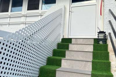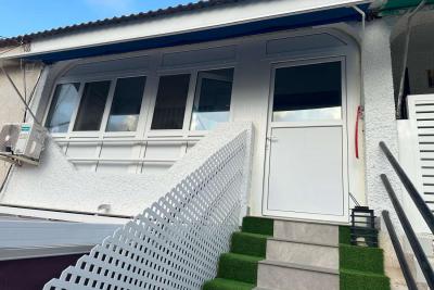 El bungalow dispone de dos terrazas, ideales para disfrutar del aire libre en diferentes momentos del día. La terraza frontal ofrece espacio para relajarse, tomar el sol o desayunar, mientras que la trasera proporciona un ambiente más privado, perfecto para cenas tranquilas o simplemente disfrutar de la brisa.