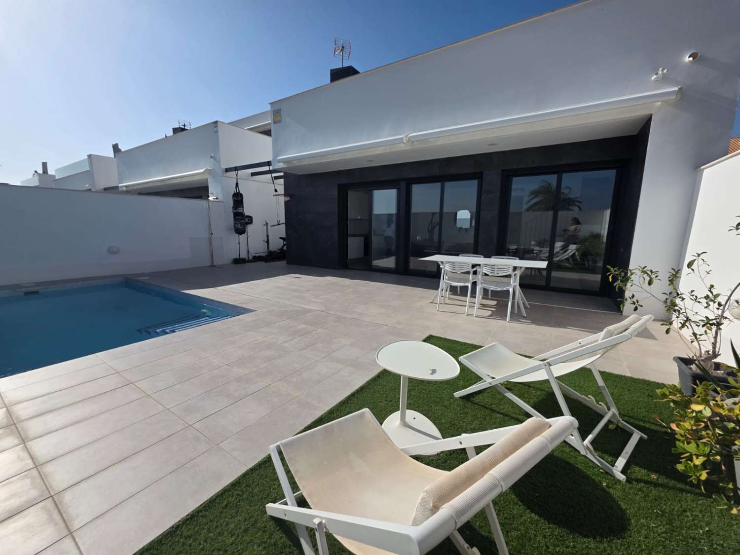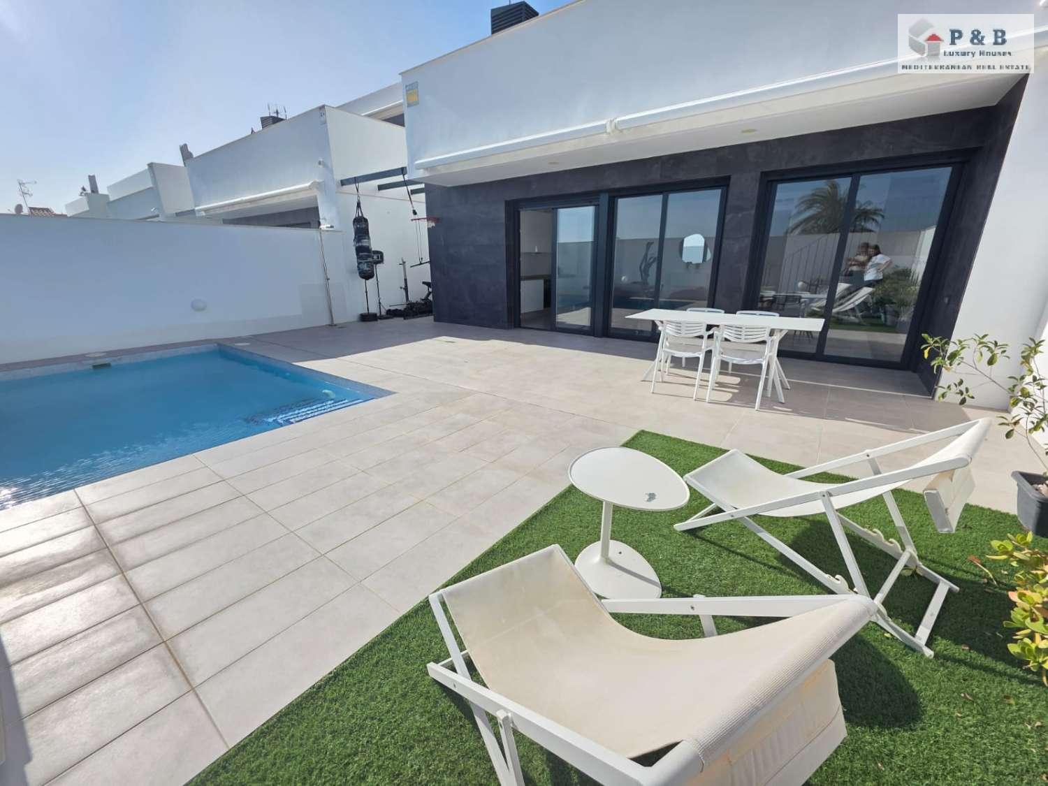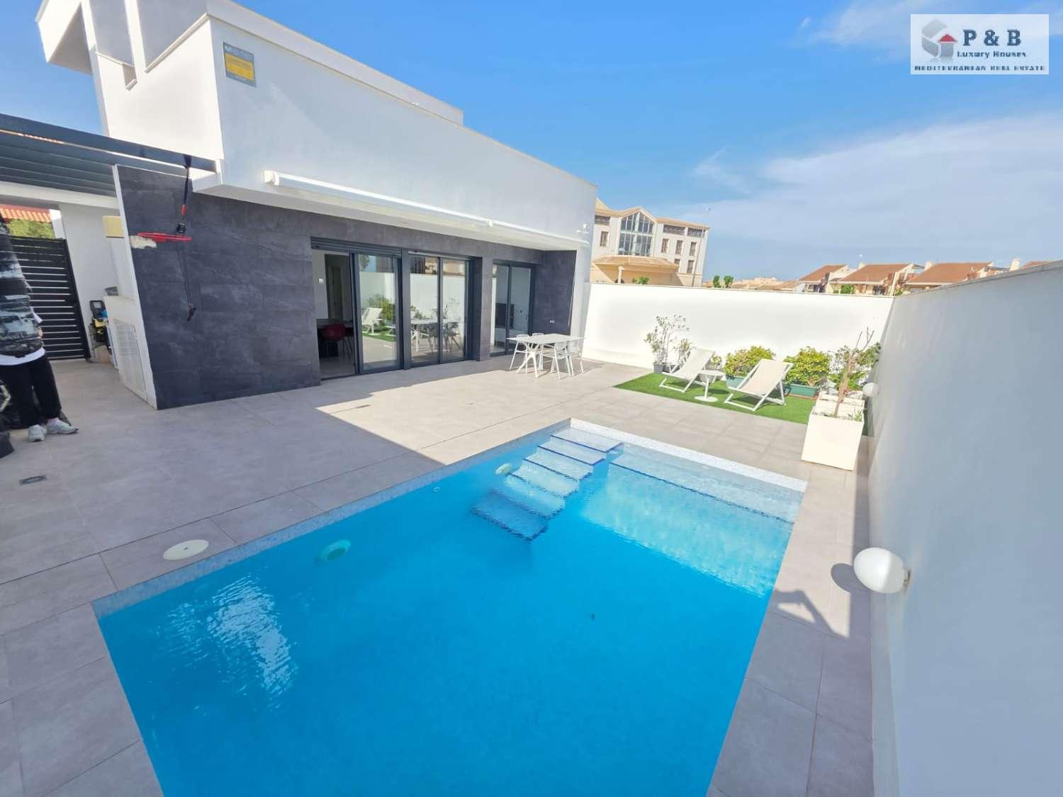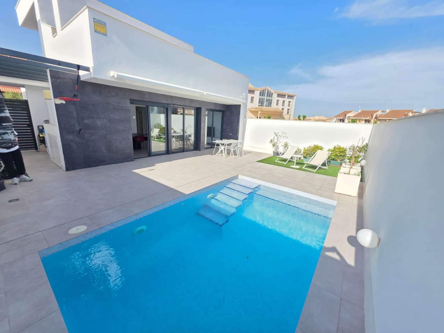 Descubre esta espectacular vivienda unifamiliar de diseño contemporáneo, situada en una zona costera a tan solo 500 metros del mar en Los Alcazares. Este chalet de obra nueva combina elegancia, funcionalidad y confort en cada uno de sus espacios.