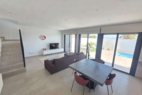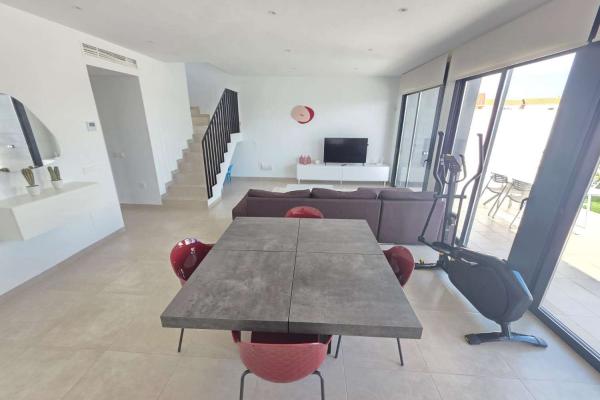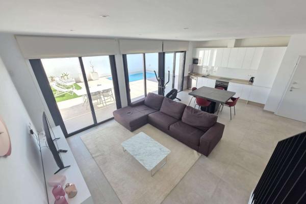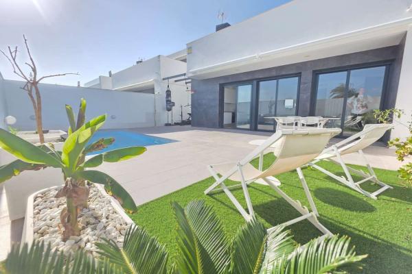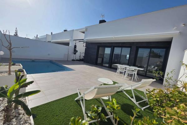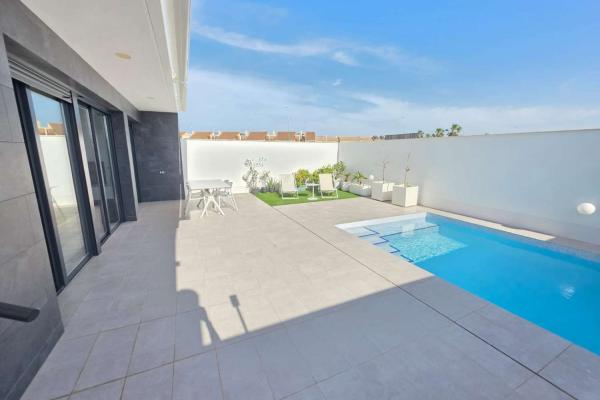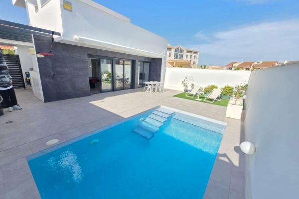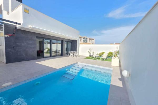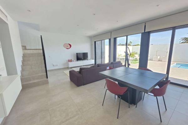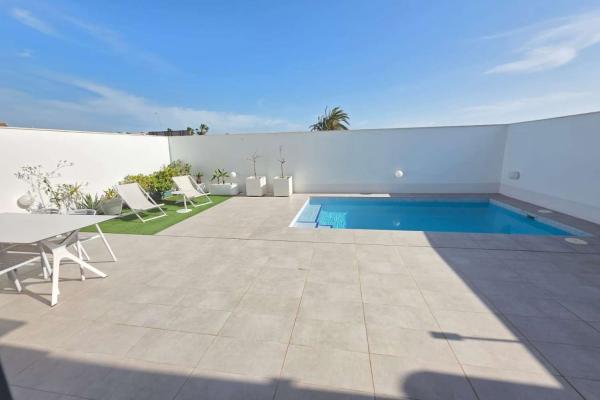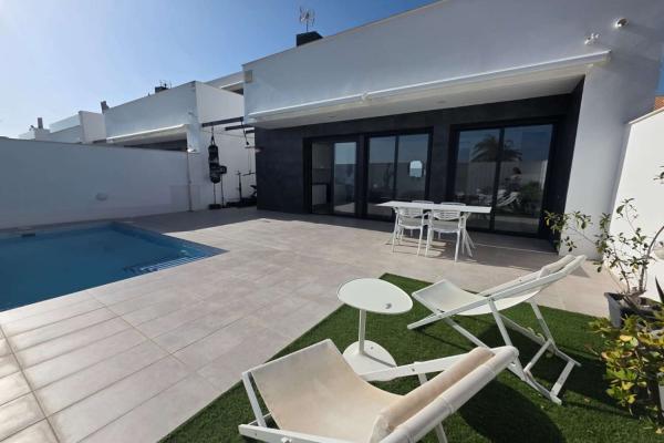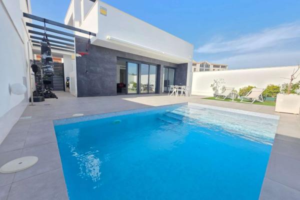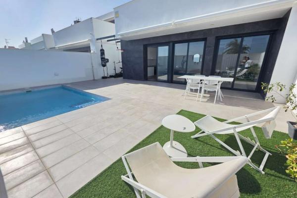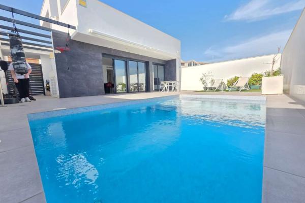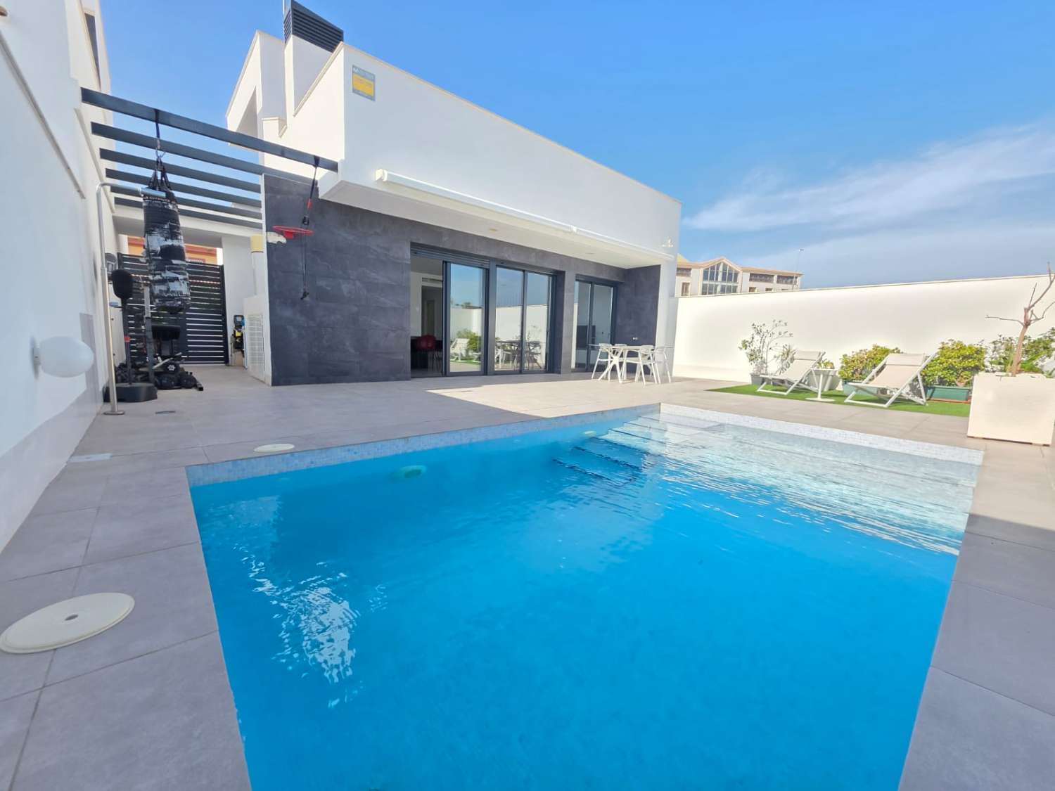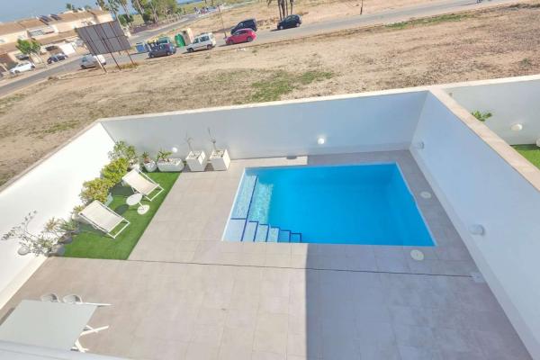 Descubre esta espectacular vivienda unifamiliar de diseño contemporáneo, situada en una zona costera a tan solo 500 metros del mar en Los Alcazares. Este chalet de obra nueva combina elegancia, funcionalidad y confort en cada uno de sus espacios.