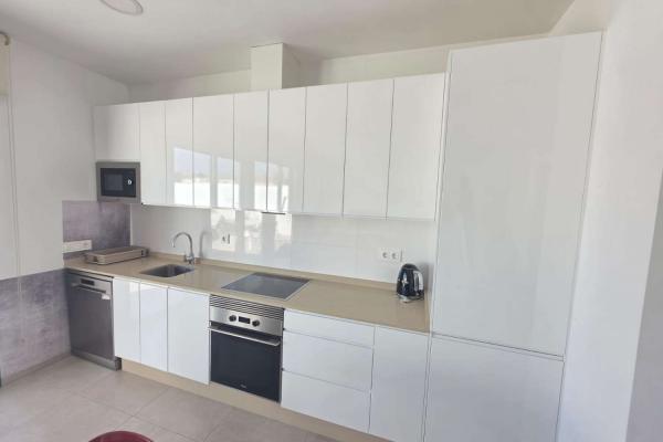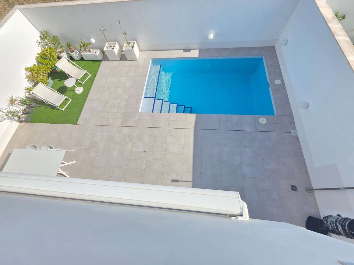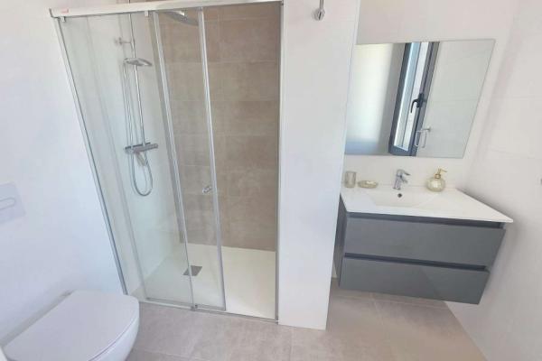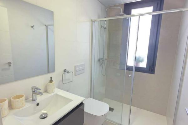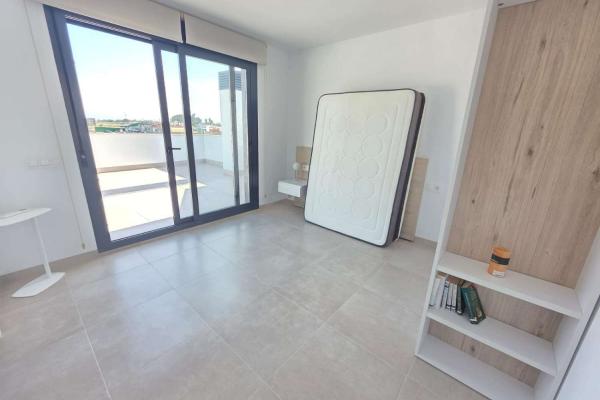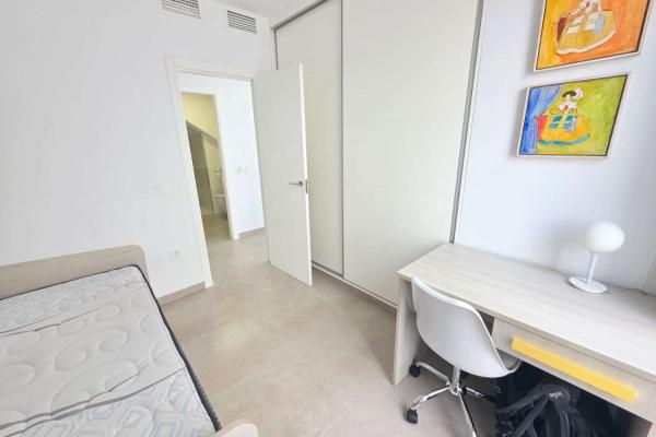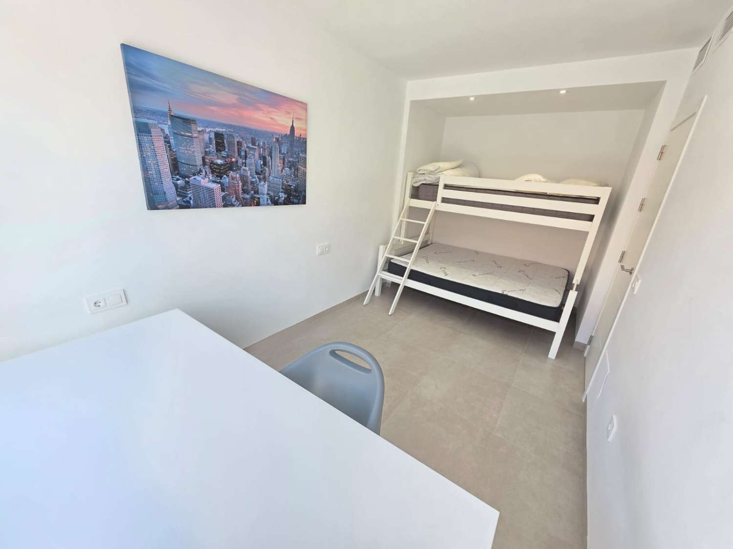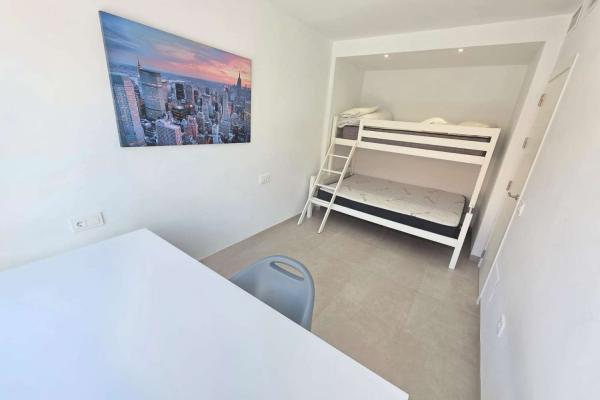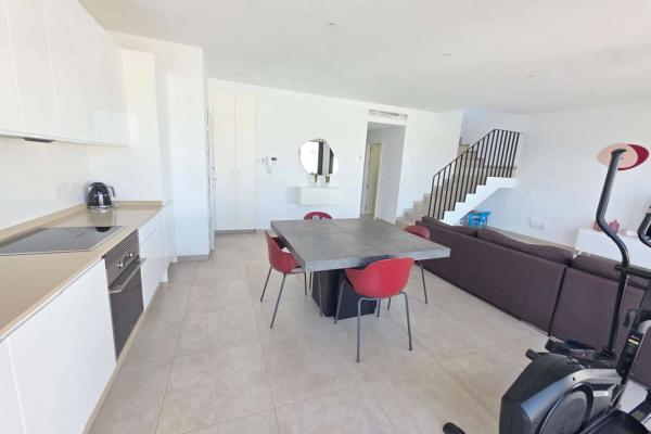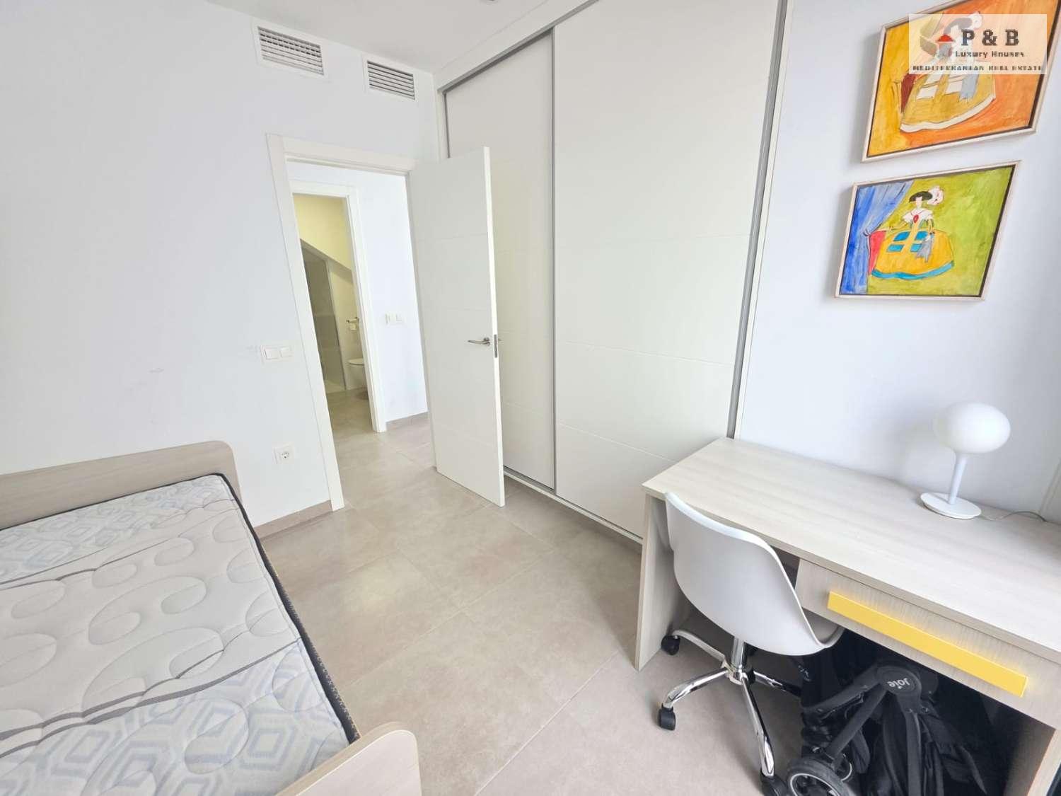 Con una superficie construida de aproximadamente 200 m², la propiedad se distribuye en dos plantas y cuenta con 4 amplios dormitorios y 3 baños completos, uno de ellos en suite. El dormitorio principal dispone de vestidor y acceso a una terraza privada con vistas parciales al mar.