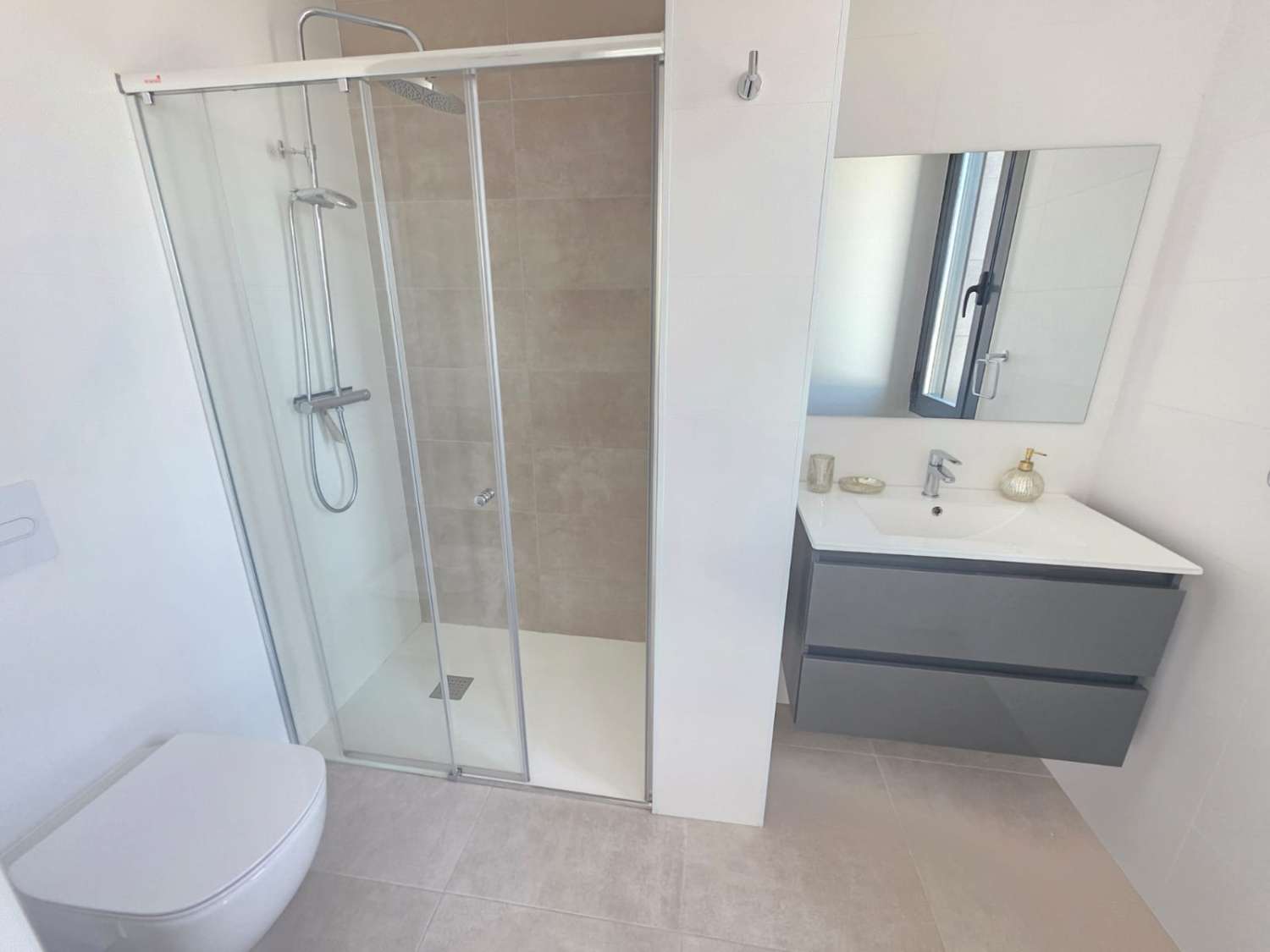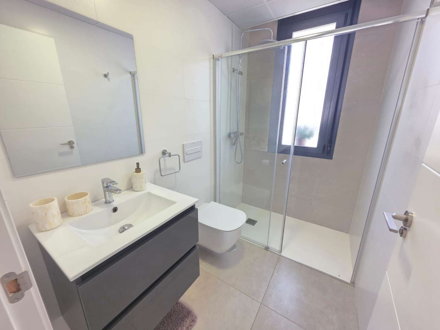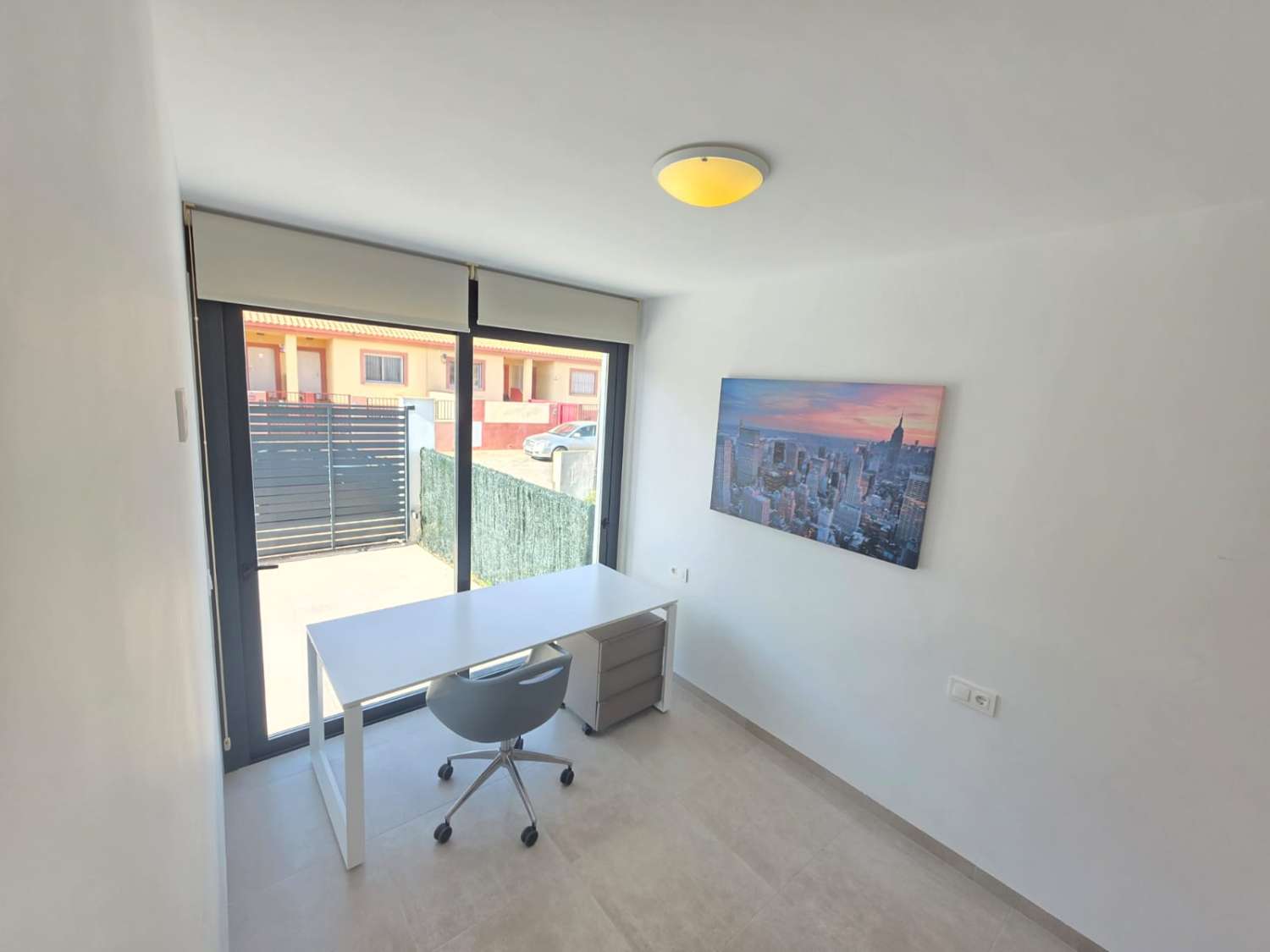 La vivienda cuenta con acabados de alta calidad: suelo porcelánico, climatización por aerotermia, carpintería exterior de aluminio con rotura de puente térmico y persianas