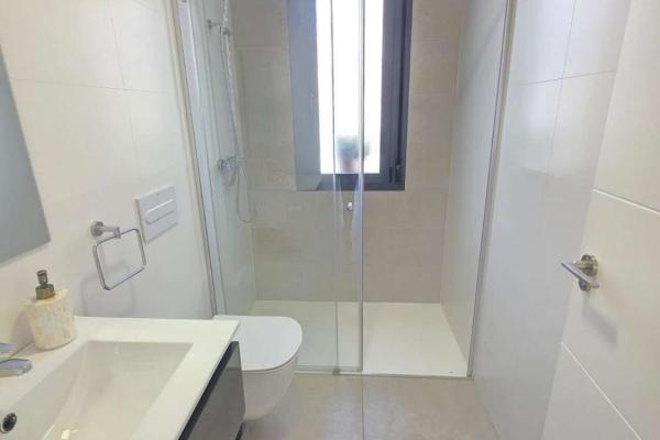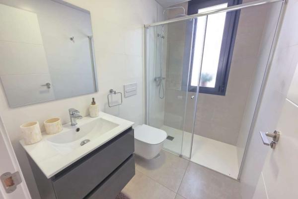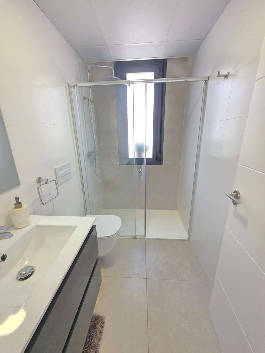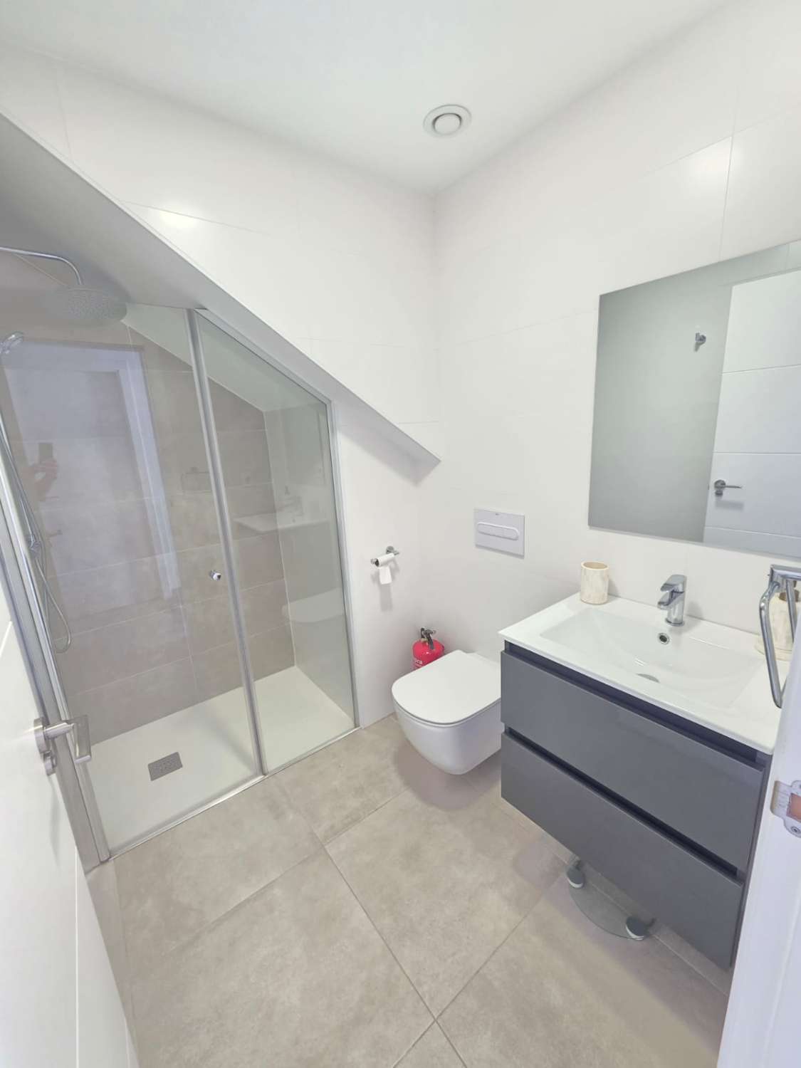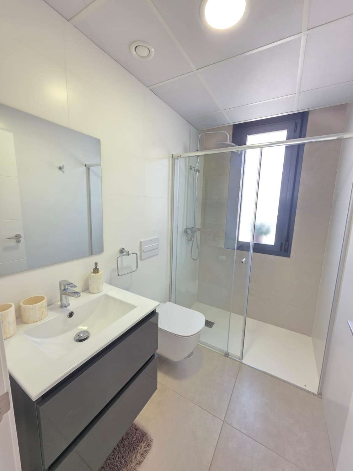 La vivienda cuenta con acabados de alta calidad: suelo porcelánico, climatización por aerotermia, carpintería exterior de aluminio con rotura de puente térmico y persianas