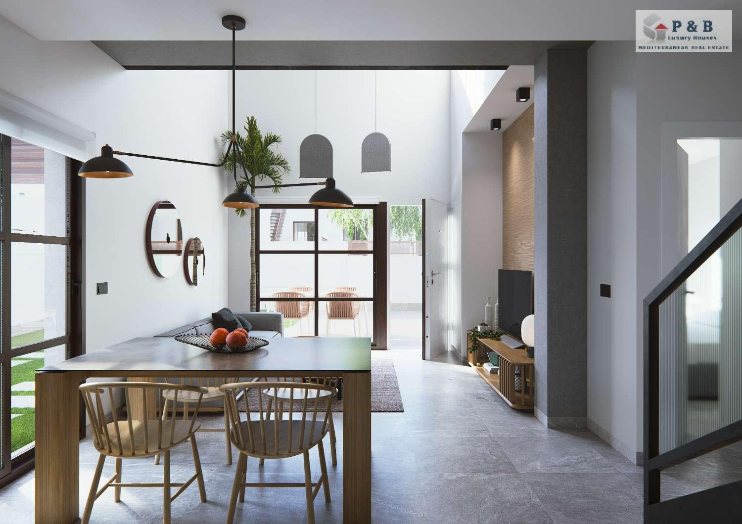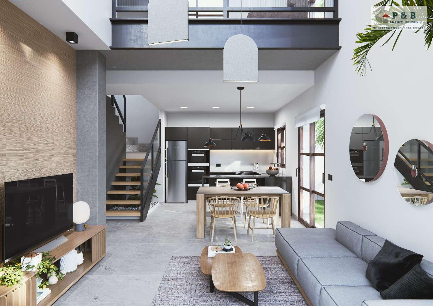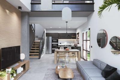 Nuestro Residencial Thai IV se compone de cuatro exclusivos dúplex diseñados en estilo industrial, con materiales nobles de tipo hierro y hormigón. Cuentan con salón a doble altura, mucha luz, piscina privada, zona de aparcamiento dentro de su parcela, así como un espacioso solárium en la tercera planta.