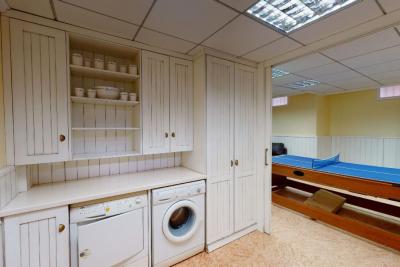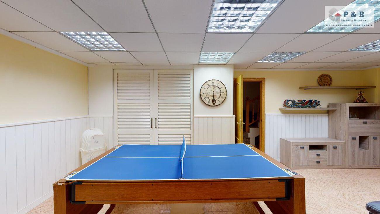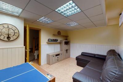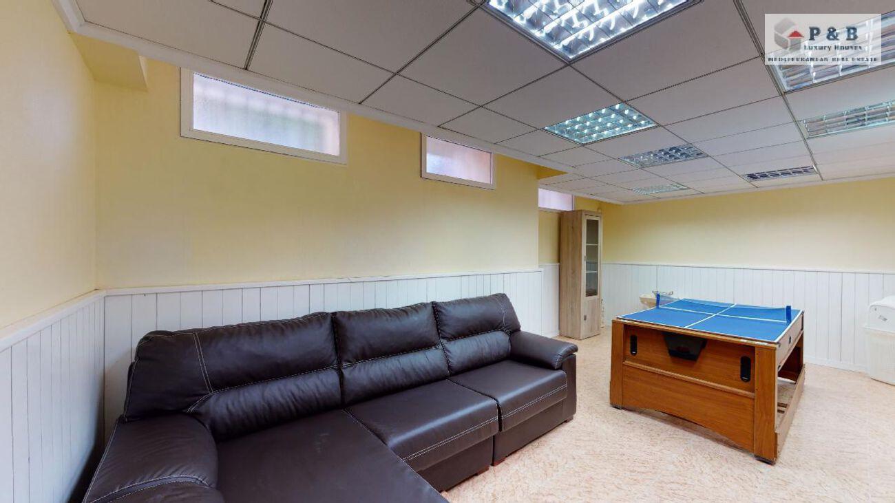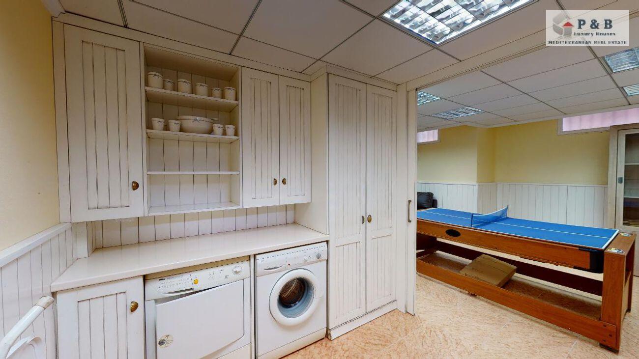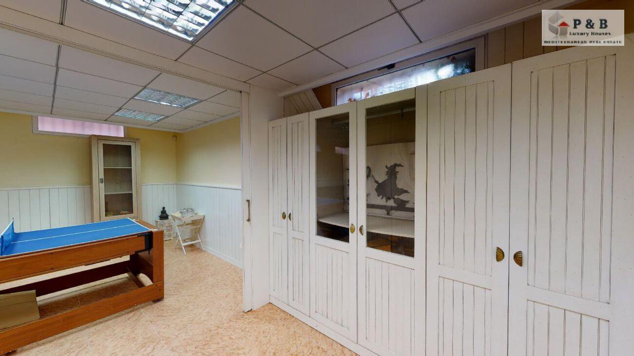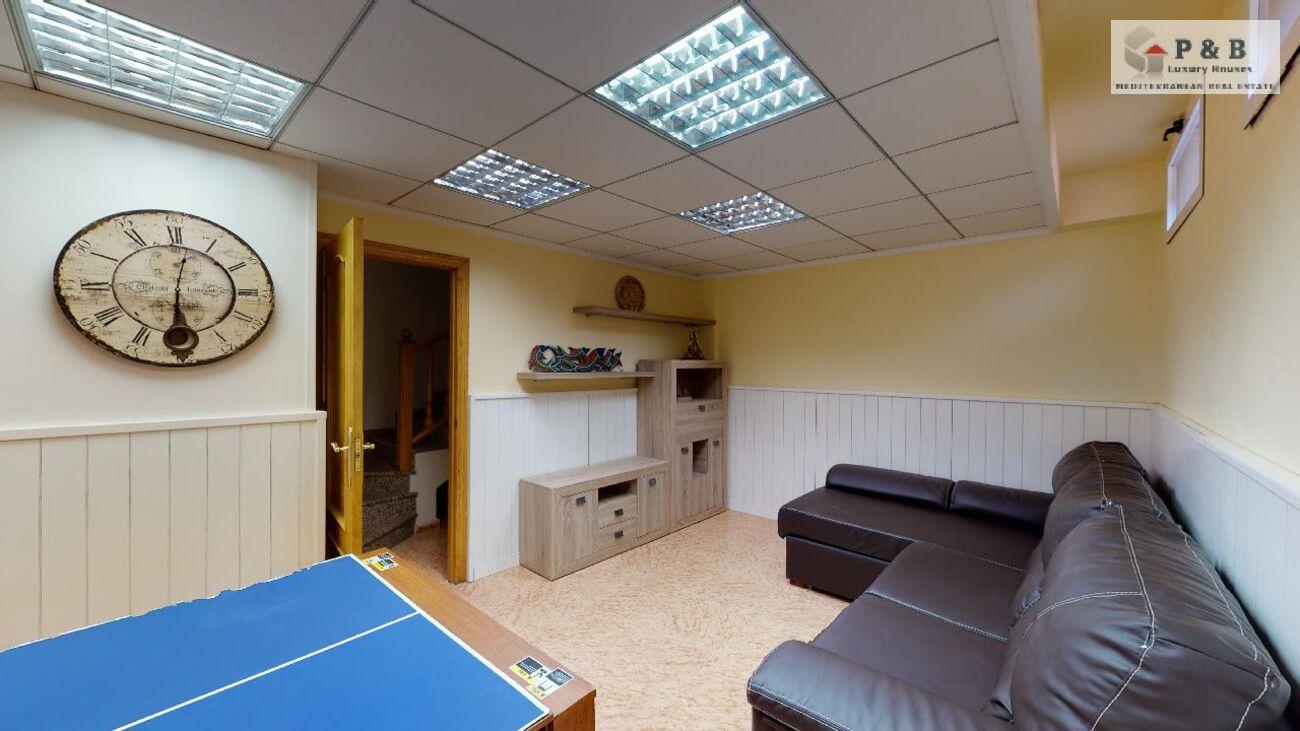 Sótano con salón, sala de juegos, galería para lavadora y amplios armarios empotrados.