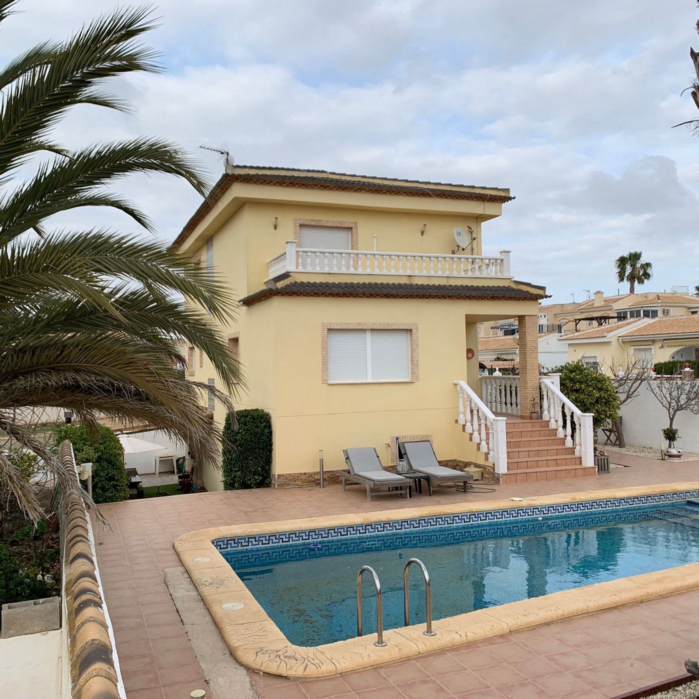 3 dormitorios, 3 baños completos, gran cocina independiente, galería, salón, comedor, terraza y dos porches. . . Parcela de aprox 500m. Piscina de 8x4. Barbacoa de obra bonita y zona ajardinada con césped artificial cubierta. . . Garaje para 3/4 coches, gimnasio, despacho y trastero.. . La vivienda se sitúa en una tranquila urbanización a 2km del pueblo de Benijófar que cuenta con todos los servicios y de la animada zona de ciudad quesada. Está a unos 10km de Guardamar y de la ciudad de Torrevieja. Fácil acceso a la autovía.