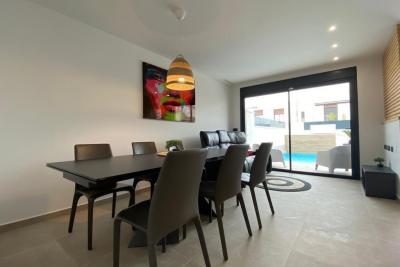 Este chalet cuenta con tres habitaciones y dos baños, una piscina privada, una terraza y un solárium con bonitas vistas, además de estar completamente amueblado, ofrece muchas comodidades para una experiencia de vida cómoda y relajante.. . La piscina privada es definitivamente un punto destacado, ya que brinda la oportunidad de disfrutar de un espacio de relajación y entretenimiento sin tener que compartirlo con otros. La terraza y el solárium con bonitas vistas también ofrecen espacios adicionales para disfrutar del aire libre y de las vistas panorámicas.. . El hecho de que el chalet venga completamente amueblado es una gran ventaja, ya que te permite mudarte sin la preocupación de tener que adquirir muebles adicionales de inmediato.