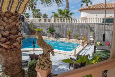 Preciosa villa se encuentra en perfecto estado. . Una casa con tres dormitorios y dos baños repartidos en una planta. . La superficie habitable es de 140 m2 y la parcela de 500m2. . Hay una hermosa terraza panorámica alrededor de la sala de estar.. Con una parcela grande y fácil de mantener, también tiene privada piscina.. Dispone de áreas de almacenamiento y armarios empotrados en todos los dormitorios.. Alrededor dispone de supermercados, restaurantes y cafeterías, bares,centro de salud, centro de idiomas, Hotel La Laguna de 4 estrellas con spa, club de golf La Marquesa, canchas de tenis, gimnasios, el centro cultural municipal. Se encuentra a sólo 4 km de las mejores playas de la Costa Blanca: Guardamar,La Marina. . El aeropuerto internacional de Alicante está a 30 km. Muy cerca de Ciudad Quesada está el Parque Nacional de las lagunas..
