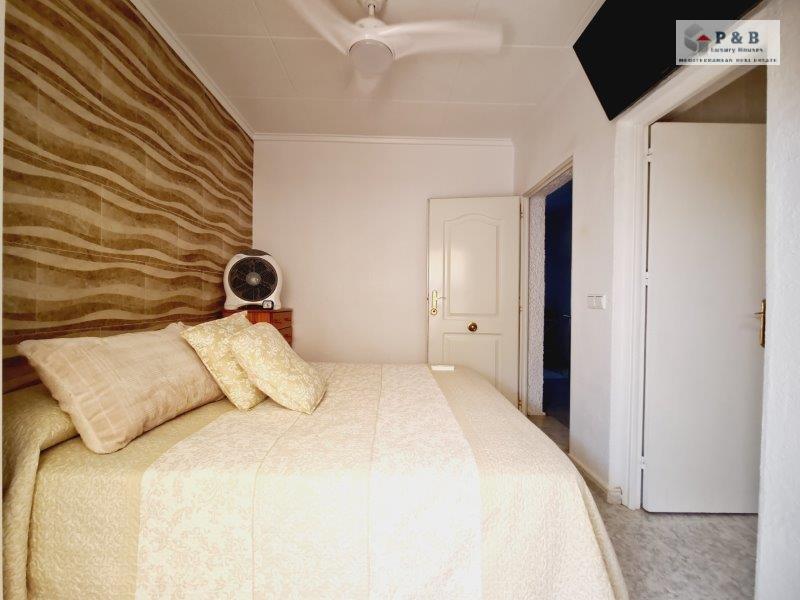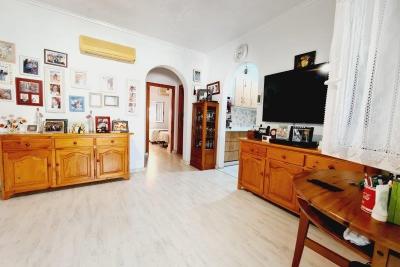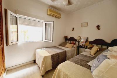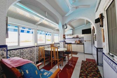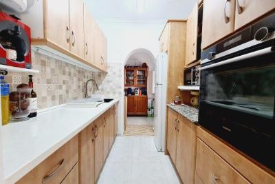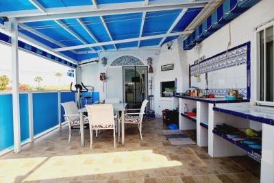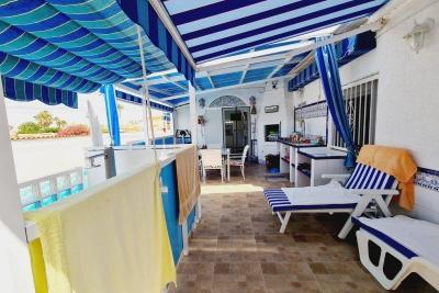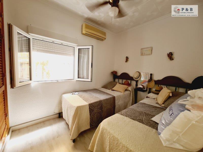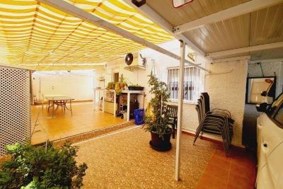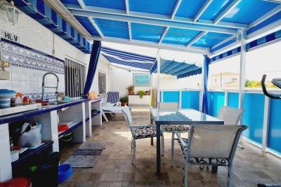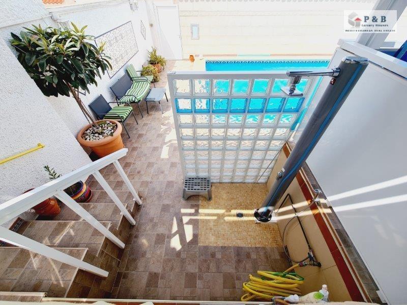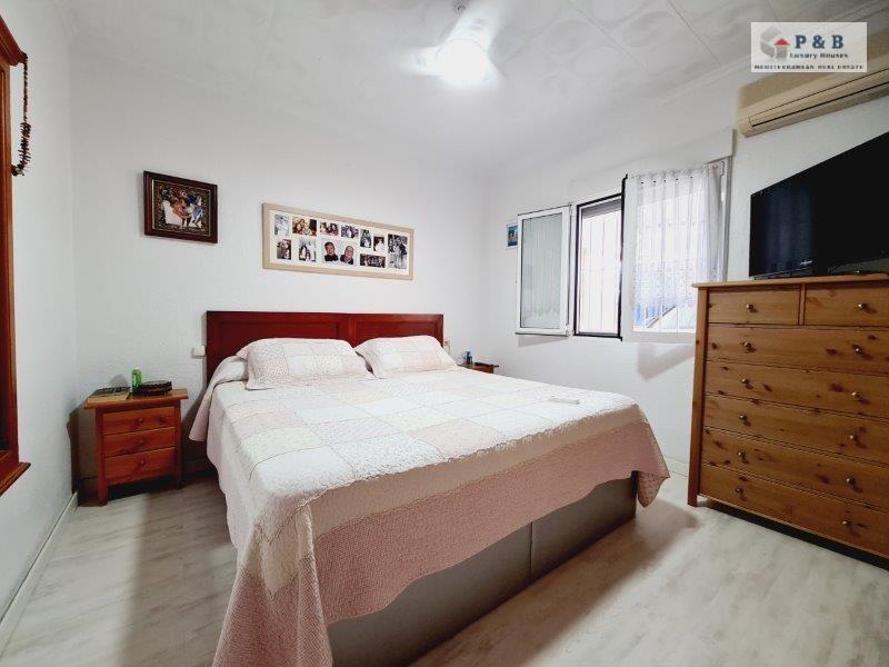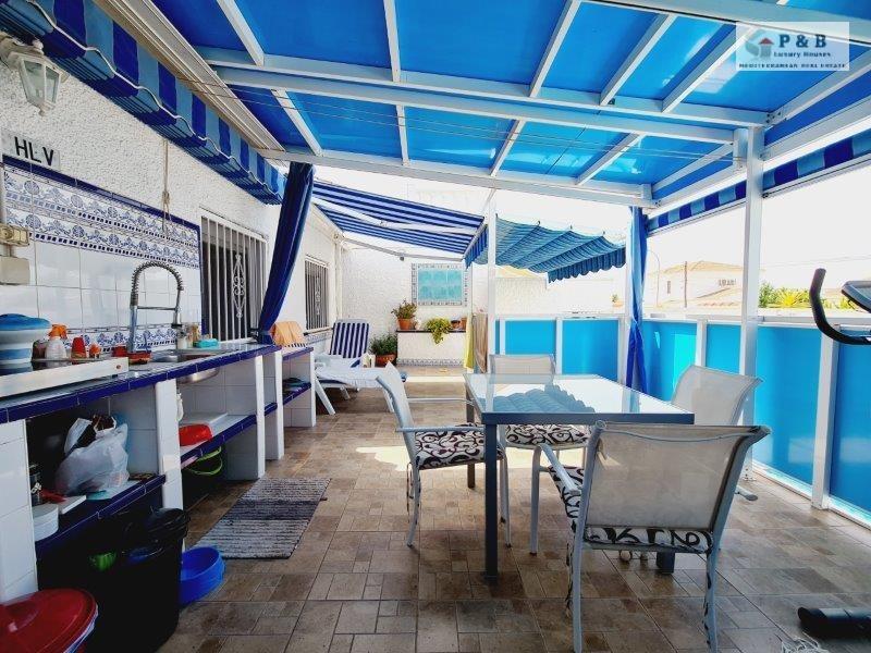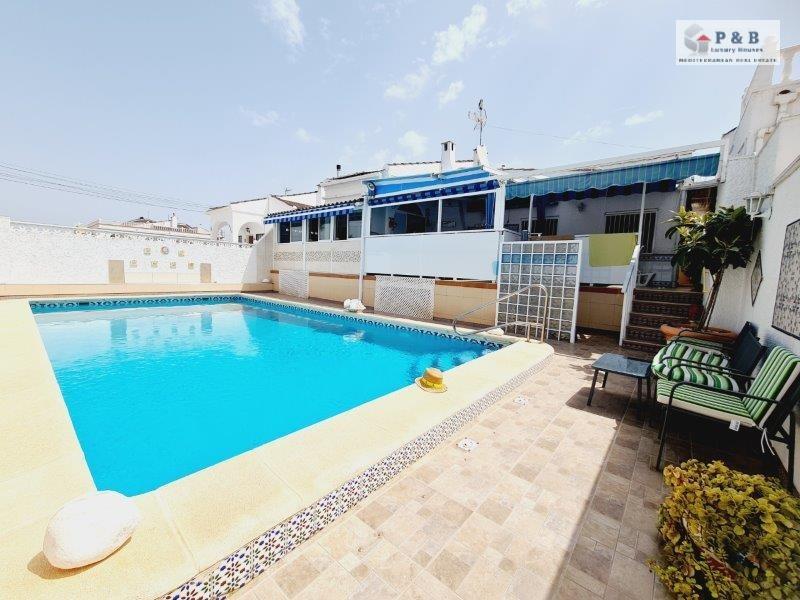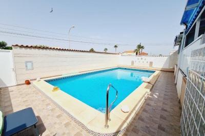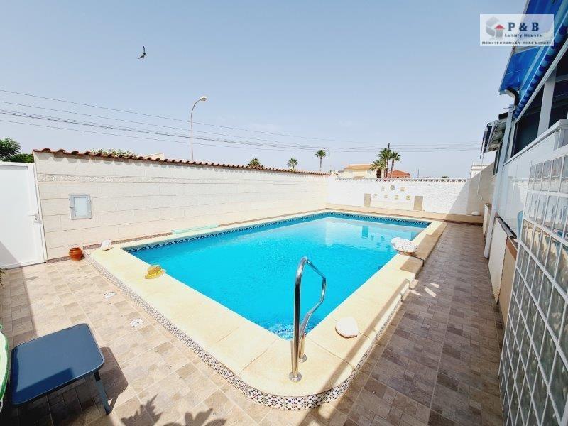 Chalet de 120 m2 de superficie útil con parcela de 300 m2, en la que podrás disfrutar en tus ratos de ocio.. . Dispone de un amplio y luminoso salón comedor, amueblada, completamente equipada e independiente del resto de estancias.. . Tiene 4 dormitorios y 2 cuartos de baño completos.. . Además cuenta con una amplia terraza para disfrutar de tus comidas con la familia o con amigos.. . La vivienda es todo exterior con una amplia piscina de 50 m2.. . Tiene una amplia terraza trasera y zona de aparcamiento para tu coche.. . Acceso a la vivienda por 2 calles.. . La vivienda dispone de aire acondicionado con bomba de calor. 13 placas solares autosuficientes de 400 W, estufa de pellet, carpintería exterior de aluminio y suelos de tarima.. . La vivienda está situada en una de las mejores zonas de Torrevieja.. . IBI: 260 €